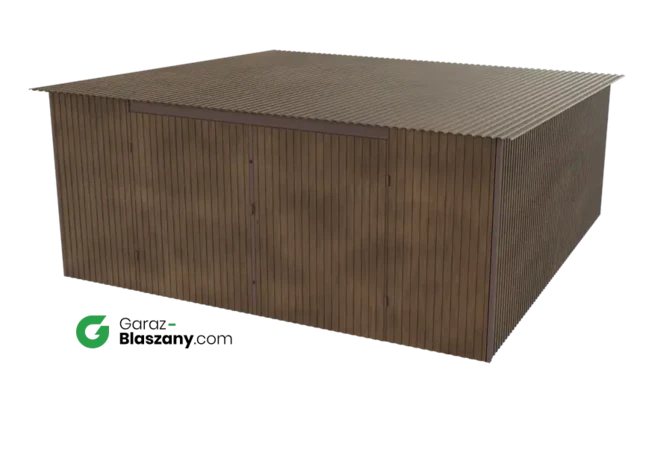 Garaż blaszany 5x5 drewnopodobny Orzech dach jednospadowy brama dwuskrzydłowa
