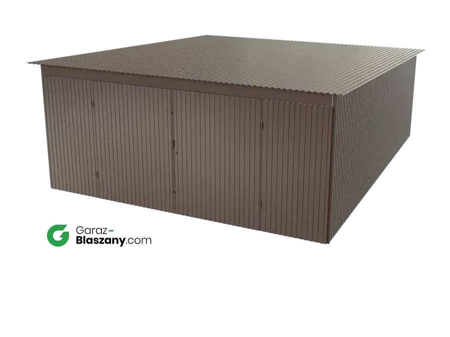 Garaż blaszany 5x6 brązowy BŁYSK dach jednospadowy brama dwuskrzydłowa