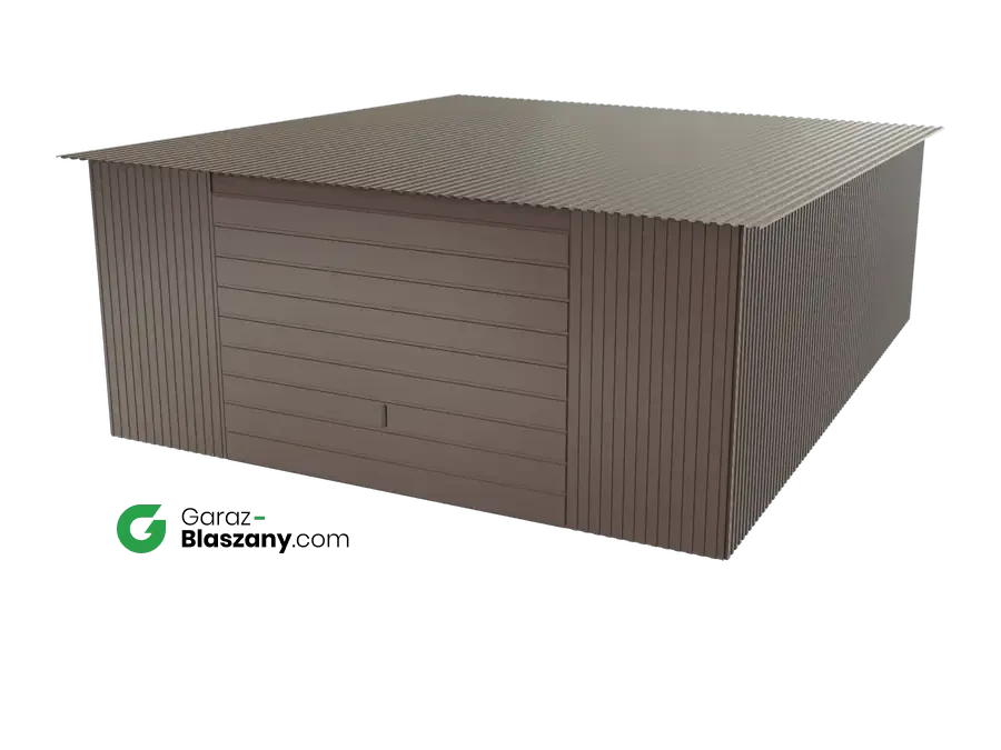 Garaż blaszany 5x6 brązowy BŁYSK dach jednospadowy brama uchylna