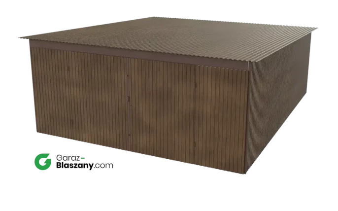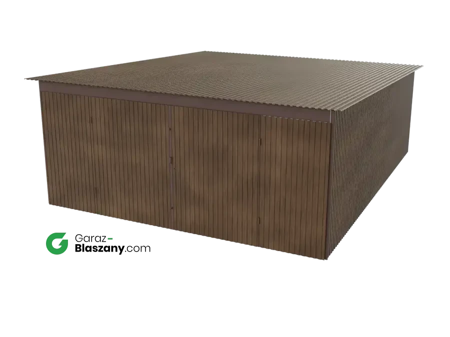 Garaż blaszany 5x6 drewnopodobny Orzech dach jednospadowy brama dwuskrzydłowa