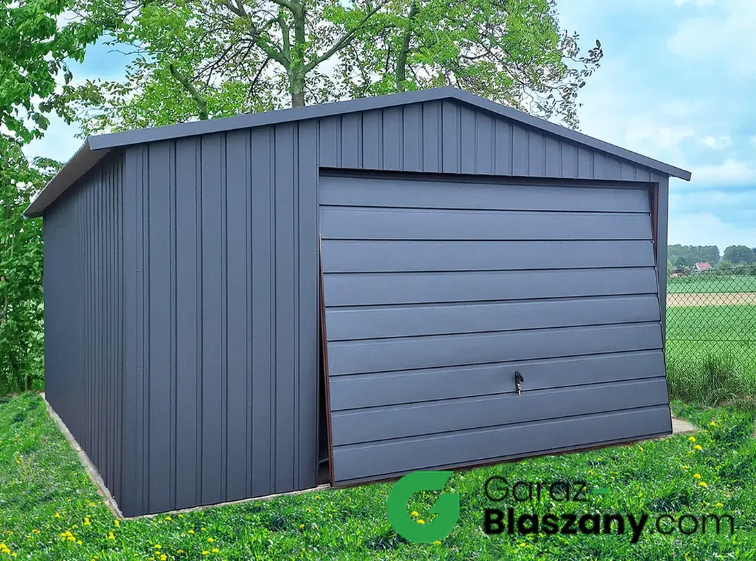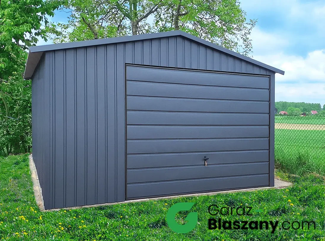 Garaż blaszany akrylowy 4x5 m grafit z obróbkami blacharskimi